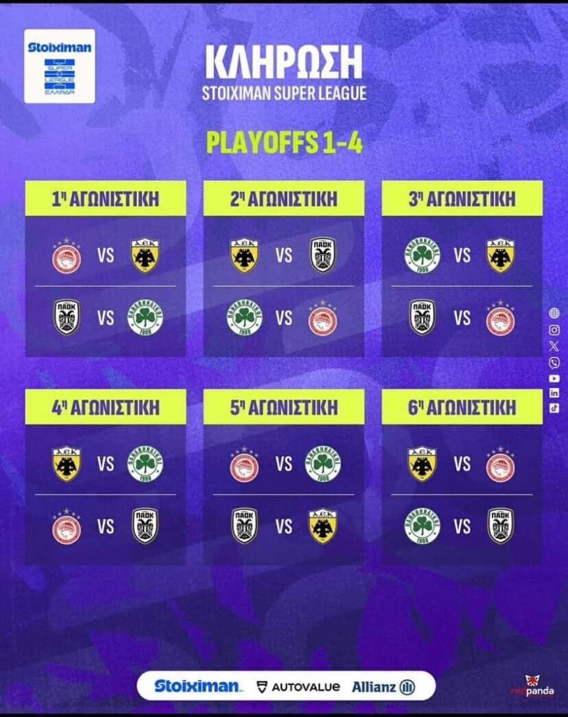 Την Τρίτη (24/03) έγινε γνωστό το πρόγραμμα των playoffs, με την πρώτη αγωνιστική του μίνι πρωταθλήματος να κάνει σέντρα το Σαββατοκύριακο 4-5 Απριλίου.