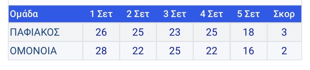 Ο Παφιακός κέρδισε 3-2 την πετοσφαιρική Ομονοια στο 5ο σετ (tie -break).