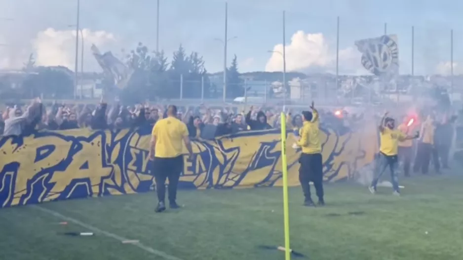 Οι φίλαθλοι της ΑΕΛ πήγαν στην προπόνηση και εμψύχωσαν τους ποδοσφαιριστές.